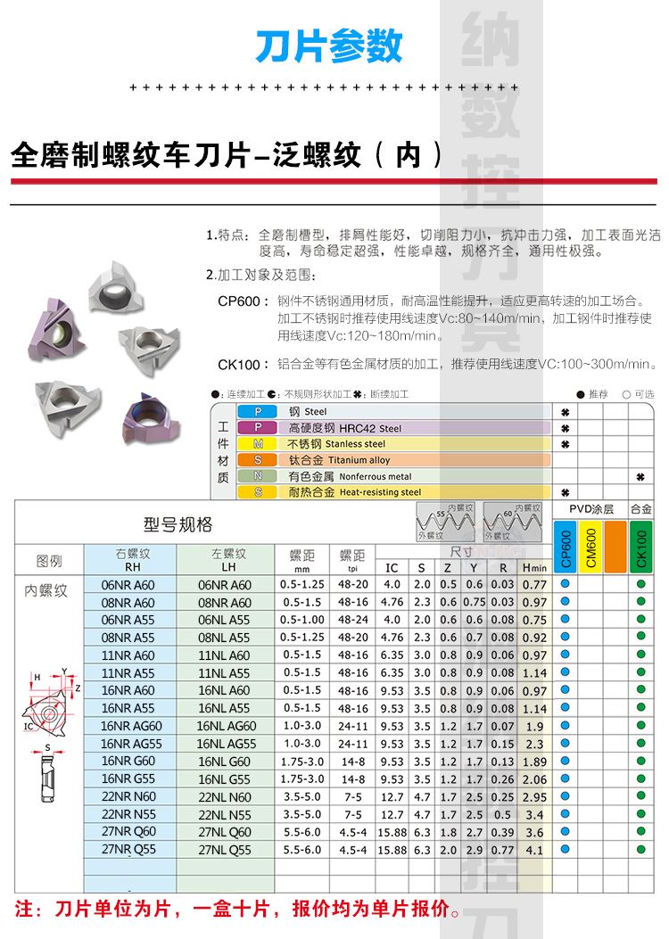 海纳16NR AG55/60内螺纹数控车刀片硬质合金钢件不锈钢用数控刀粒