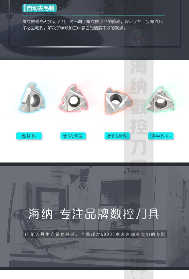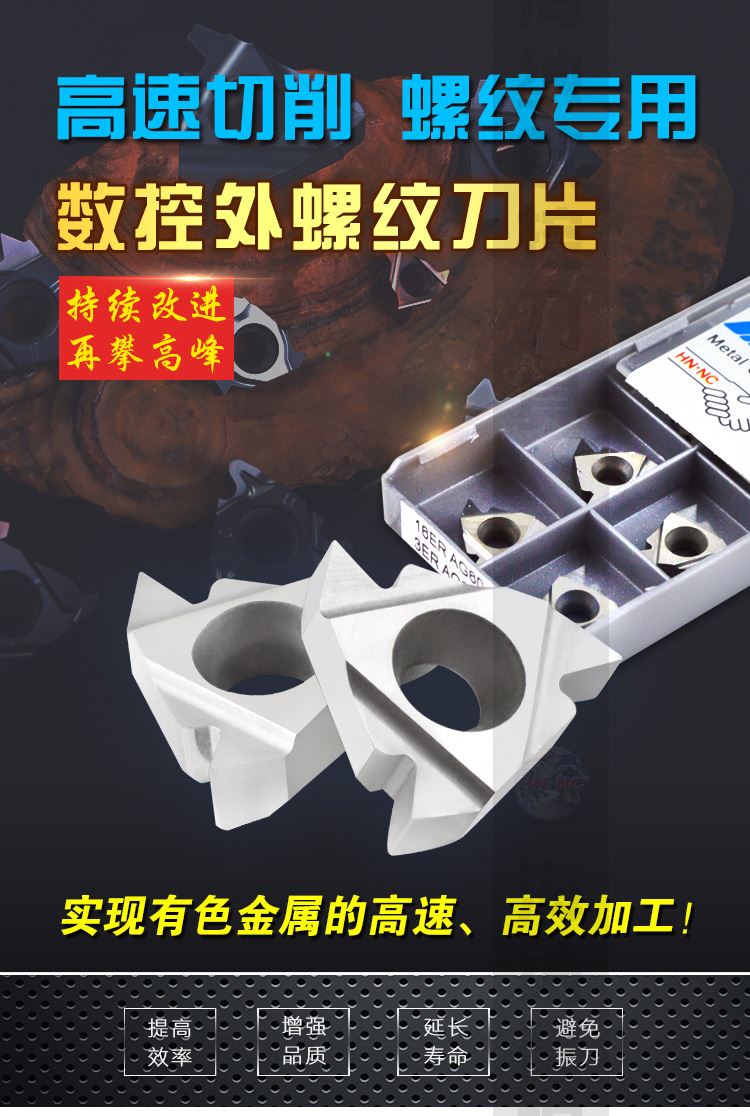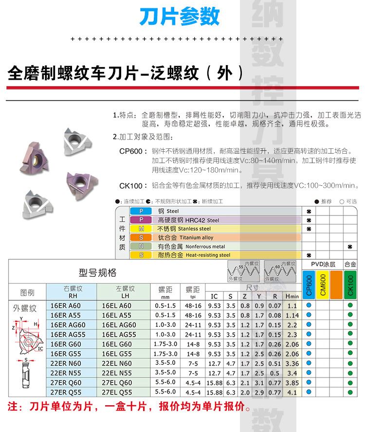 海纳16ER AG55/60外螺纹挑丝数控刀片铝合金黄铜用外螺纹数控刀粒