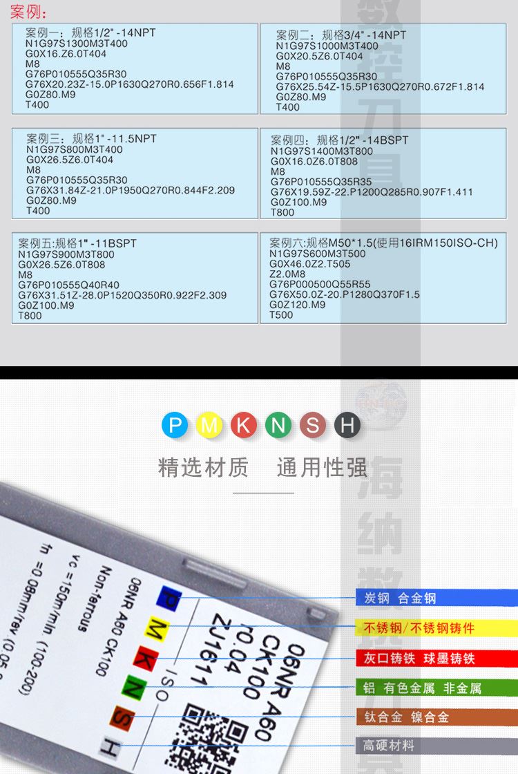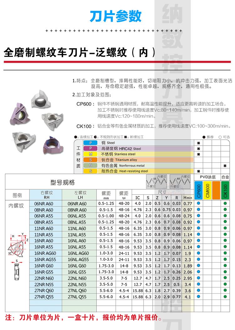 海纳08NR A60/55内螺纹数控车刀片铝合金黄铜有色金属内牙挑丝刀