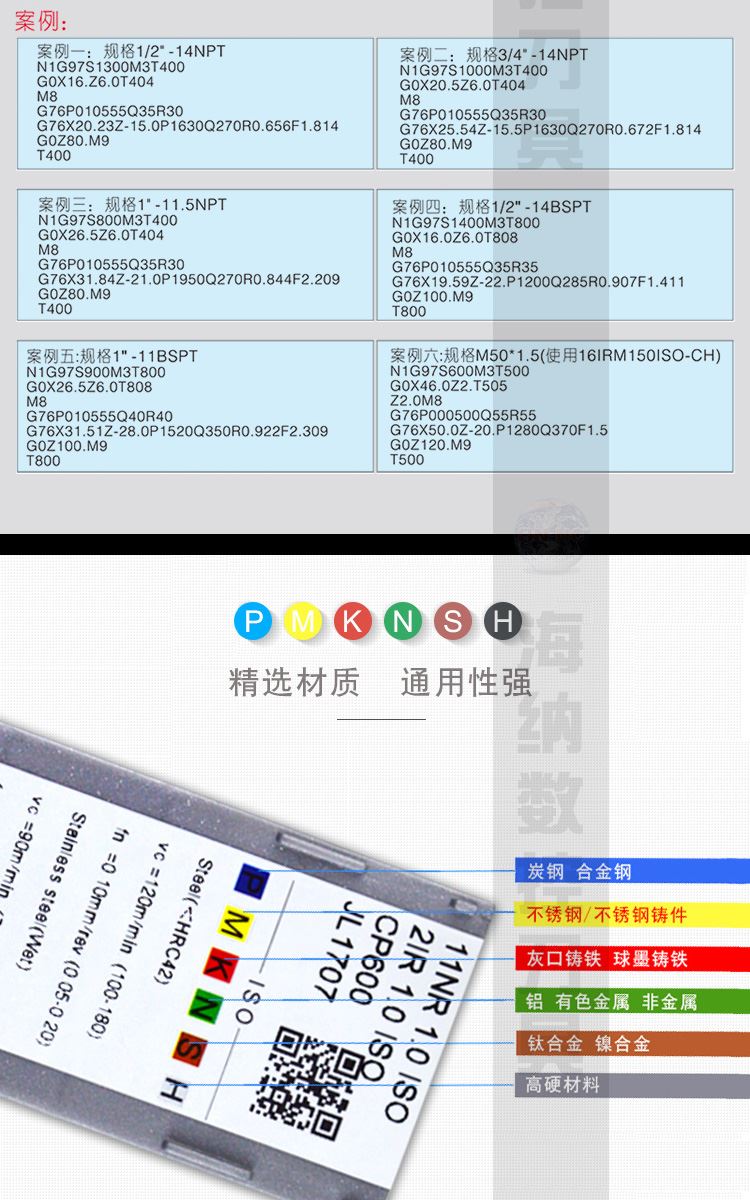 海纳11NR ISO0.5/0.75/1.0/1.25/1.5钢件不锈钢用内螺纹车刀片