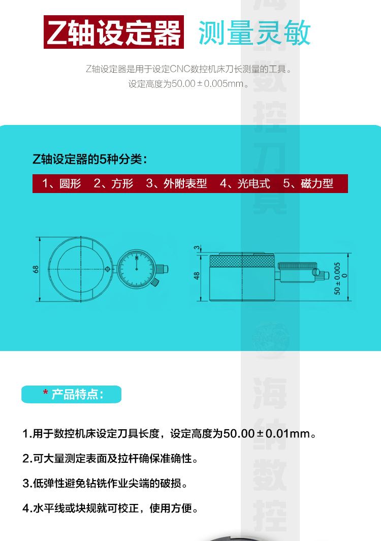 HN·NC海纳HP-50B量表式Z轴设定器CNC综合加机Z轴对刀仪对刀表