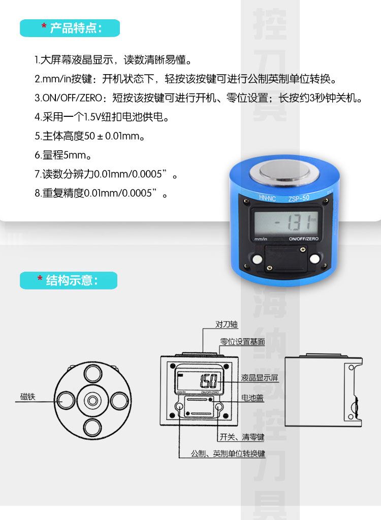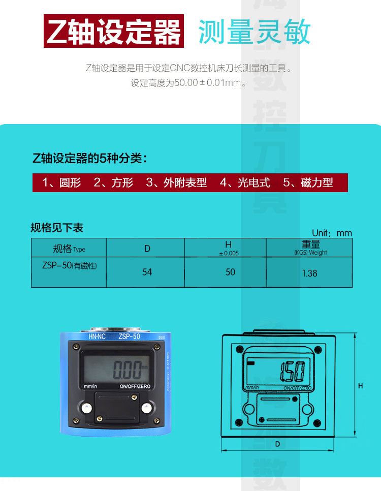 海纳ZSP-50数显Z轴设定仪电子Z轴对刀仪内置数字刀具高度设定器