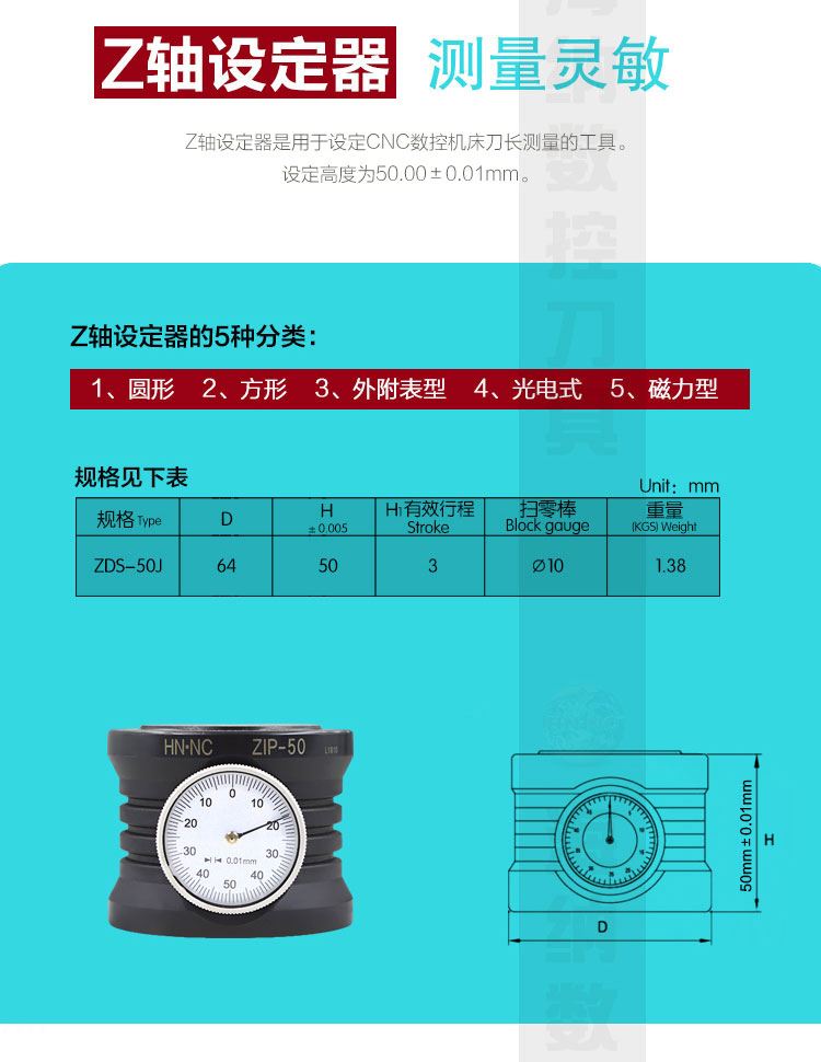 海纳ZIP-50内置式量表型Z轴对刀仪CNC数控刀具高度设定器