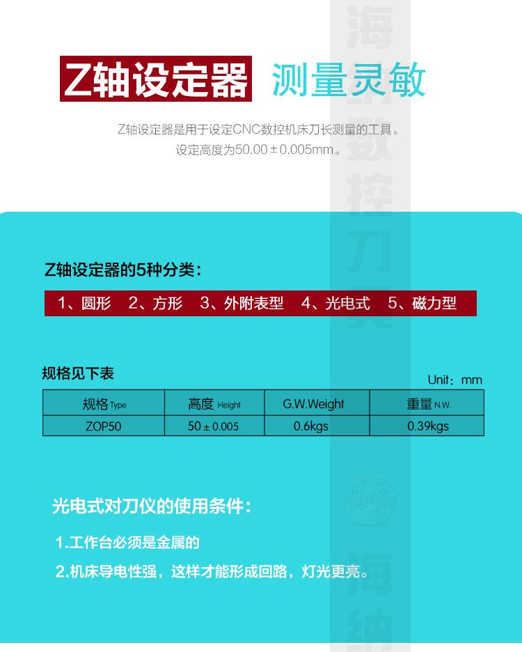 海纳ZOP-50光电式Z轴设定器电子Z轴对刀仪测量刀具高度对刀器