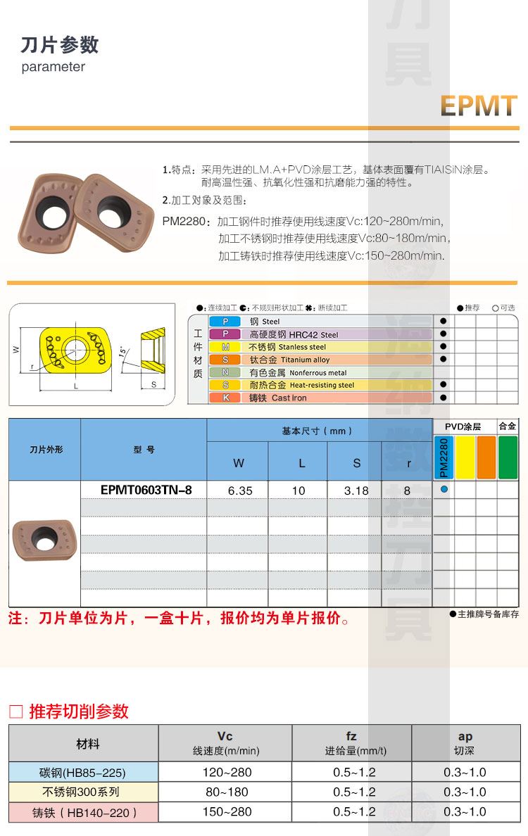 首页 > 商城 > 数控刀片 > 铣削刀片 > 其它铣刀片 > EPMT