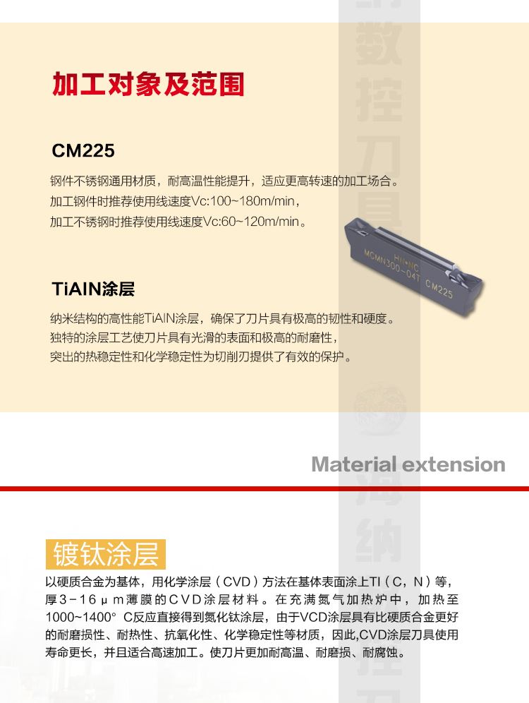 海纳MGMN500-08 T-CM225硬质合金钢件不锈钢用切槽切断数控刀片