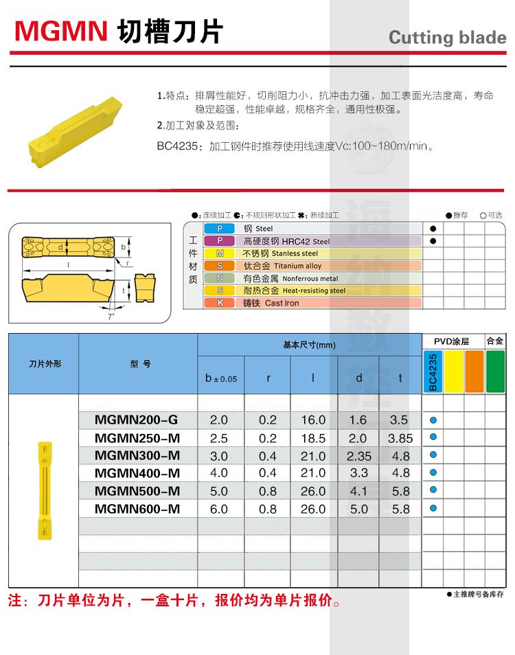 海纳MGMN300M BC4235钢件专用数控切槽切断数控刀片MGEHR刀片