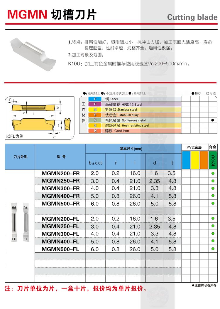 NASKA纳斯卡MGMN300M MP3010钢件不锈钢用双头切槽数控切断刀片